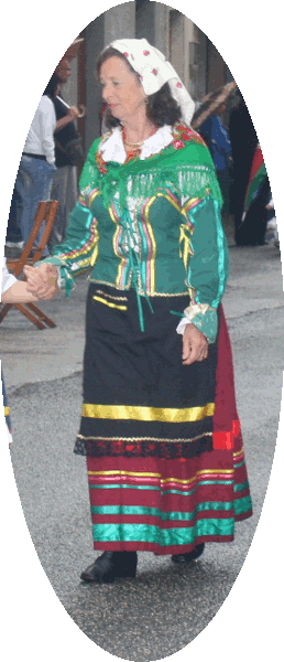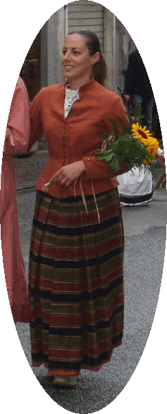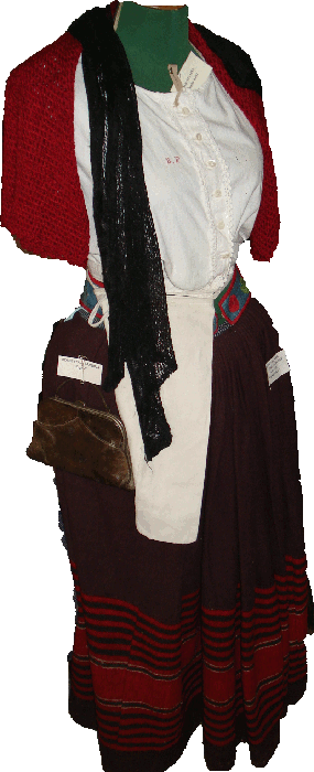 On the right dress of the late ‘800 century in wool and linen, hand weaved and home sewed, it was in the Museum of Shepherds and Charcoal Burners of San Martino. |