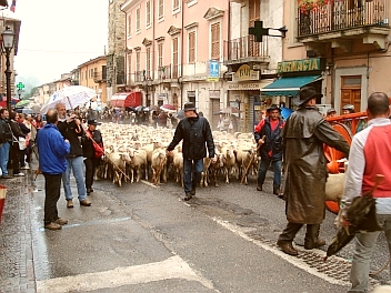 (o Rocchetta) a fine estate. Ma il momento più caratteristico era rappresentato dalla sfilata storica attraverso il centro storico di Amatrice, con muli con i basti, butteri a cavallo, carri d'epoca trainati da buoi, donne e bambini con i vestiti tradizionali, suonatori di organetto e ciaramelle...e tantissime pecore di razza Laconne e della tipica razza Appennininca Sopravvissana.